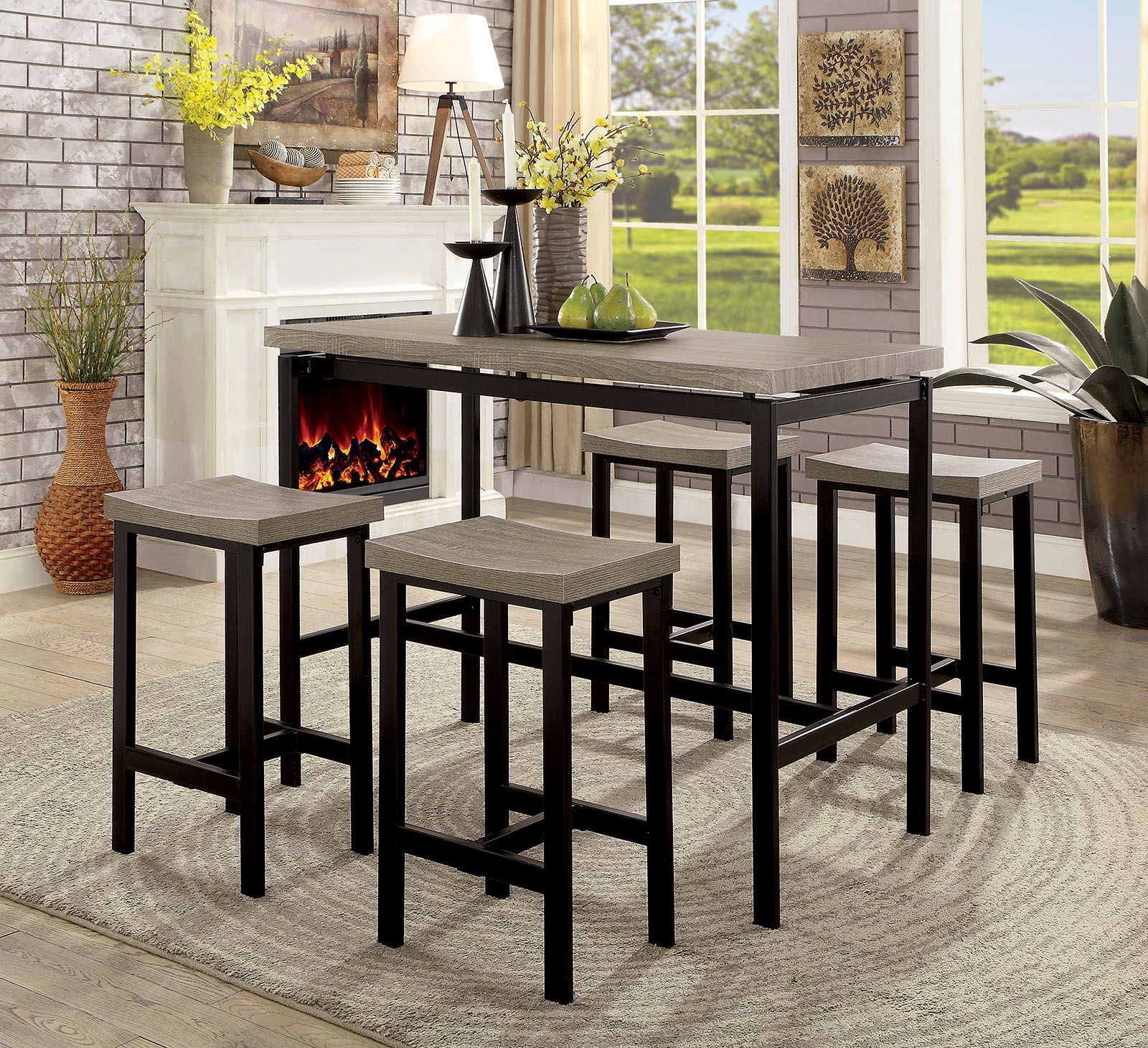 5 Pc Counter Height Table Set Two Tone Design Black Gray Dining Chairs Sturdy Metal Construction PVC Plastic Top Dining Room Furniture 5 Pc Counter Height Table Set Two Tone Design Black Gray Dining Chairs Sturdy Metal Construction PVC Plastic Top Dining Room Furniture 5 Pc Counter Height Table Set Two Tone Design Black Gray Dining Chairs Sturdy Metal Construction PVC Plastic Top Dining Room Furniture