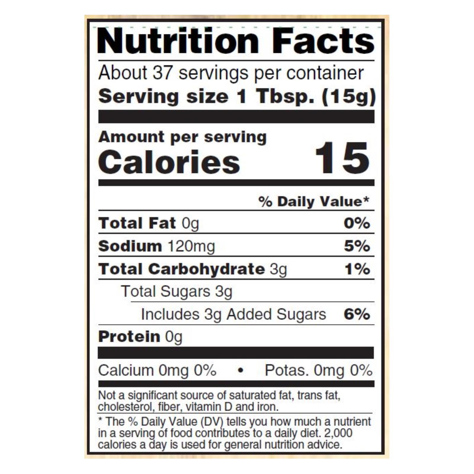 Woodstock’s organic sweet relish is certified usda organic and kosher. Each 16 fl. Oz. Jar contains about 30 one tablespoon servings with just 15 calories per serving. We are a proud member of the organic trade association. Our sweet relish starts with simple ingredients, such as organic cucumbers and dried cane syrup.