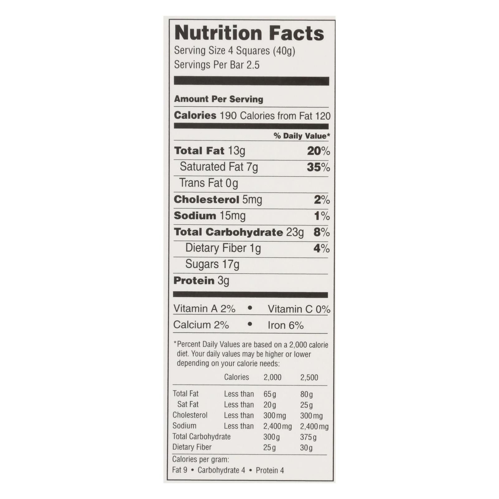 Lindt excellence intense orange dark chocolate contains almond slivers for a delicious blend of creamy and crunchy goodness. Orange pieces and natural orange flavoring add tangy sweetness to the rich flavor of dark chocolate for an indulgent, gourmet treat. This 3.5 oz. Creamy dark chocolate bar contains two and 1/2 servings.